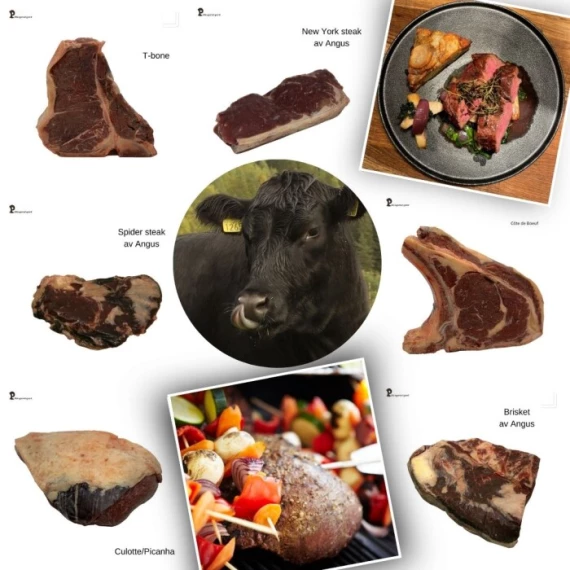 100% grasfôra økologisk og langtidsmørna anguskjøtt.