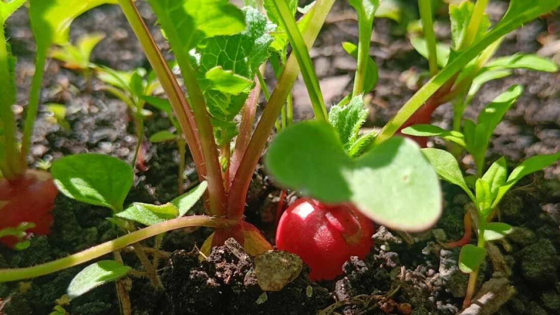 Nå vokser det vanvittig fort i grønnsaksåkeren og drivhuset. Vi synes selv at smaken på grønnsakene våre er fantastisk, og det er ikke så rart, jordsmonnet her er unikt. God moldjord og fruktbar husdyrgjødsel, og under finnes leirjord fra gammel sjøbunn, en slager for grønnsaker og det merkes på smaken. I tillegg driver vi så gravefritt som mulig og dekker bar jord med det vi har av jorddekkematerialer. Dette gjør vi for å bevare og bygge opp det unike mikrolivet i jorda. Dette underjordiske livet, alle de små vesenene, er forutsetningen for fruktbar jord på lag med naturen.
