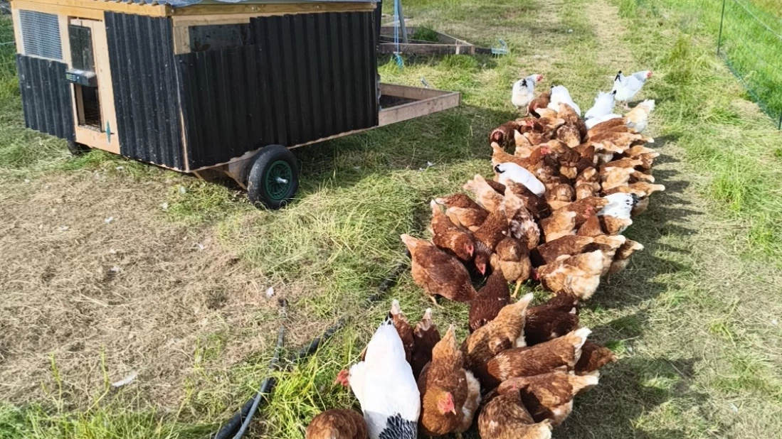 Fra juni 2023 har vi brune og fine egg daglig fra høner som flyttes med elektrisk innhegning til ferskt gress og spreke insekter 2-3 ganger i uka. Våre brune Lohmans har enorm boltreplass i og rundt en mobil hønsevogn beregnet på opptil 350 verpeglade høner. Egg fra virkelig frittgående høns, ikke bare innehøns med tilgang til en liten utegård, får levd et lykkelig liv med plenty av trim, god mat og solskinn. De er ute i frisk luft hele dagen, men om natta er de trygge inne i sitt rovdyrsikre hønsehus. Dette spiller selvfølgelig inn på både næringsinnhold i eggene og livsgnisten til hønene selv. Fargen på plommen varierer med sesongen, tilgangen på insekter, sol og miljø ellers, men både smak og farge er nok til å gi oss et smil om munnen når eggene knekkes :D